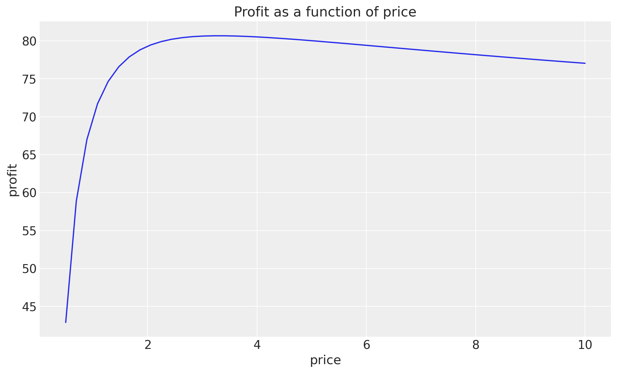We can of course solve this analytically by taking the derivative of the profit function with respect to the price and setting it to zero.