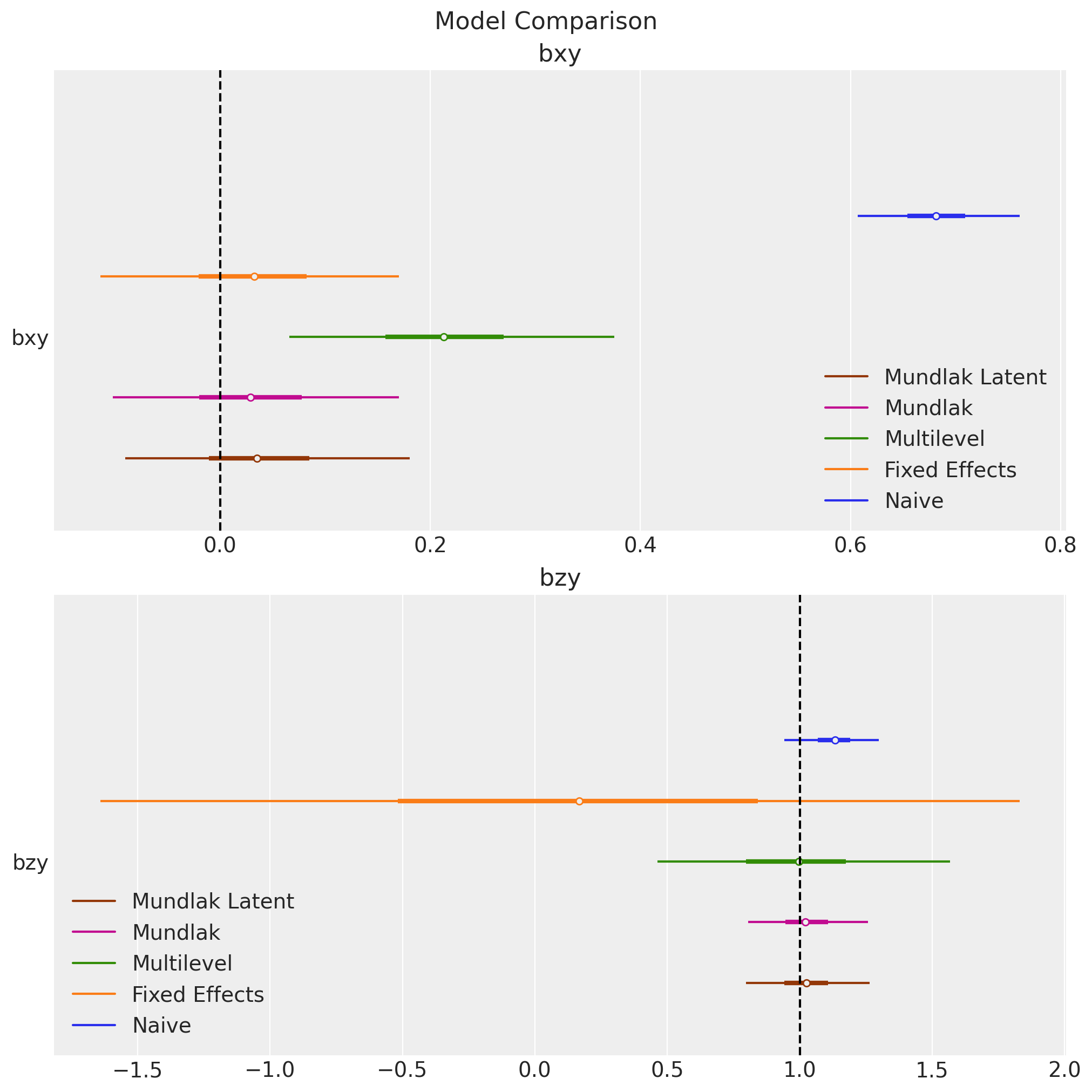 model_names=["Naive", "Fixed Effects", "Multilevel", "Mundlak", "Mundlak Latent"],