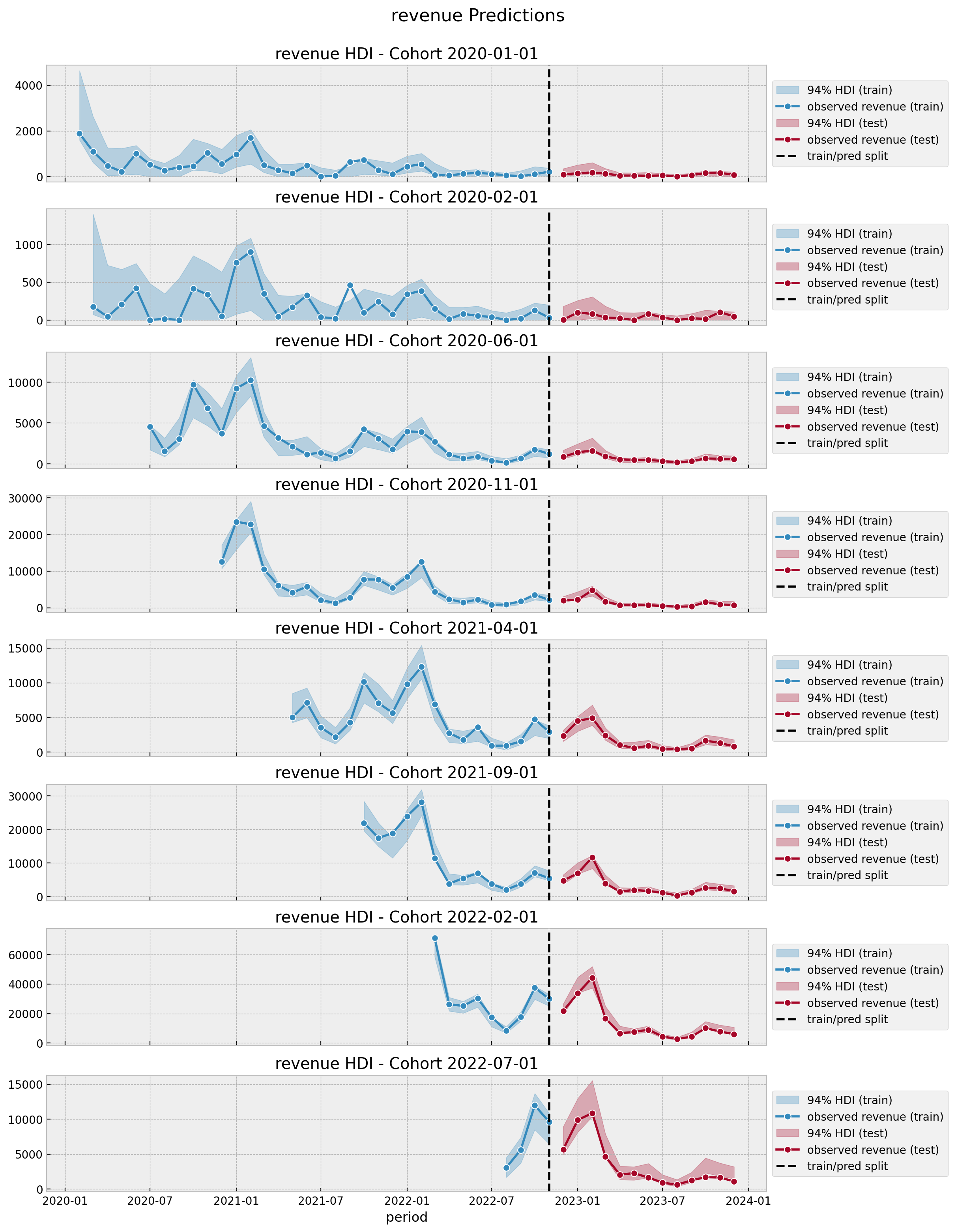 Bayesian marketing toolbox in PyMC. Media Mix (MMM), customer lifetime value (CLV), buy-till-you-die (BTYD) models and more.