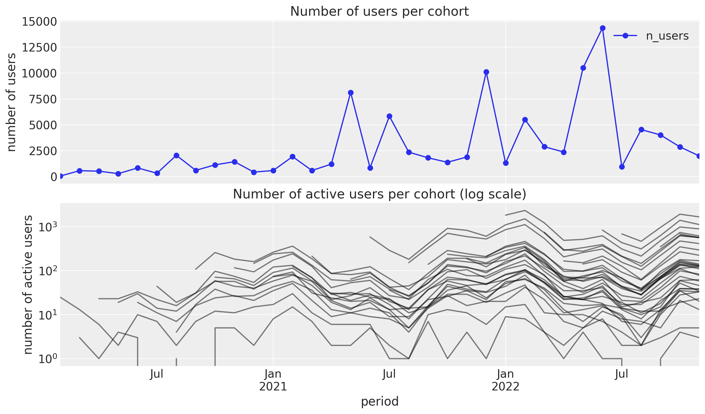 During January \(2020\), \(100\) users signed up for a service (cohort).