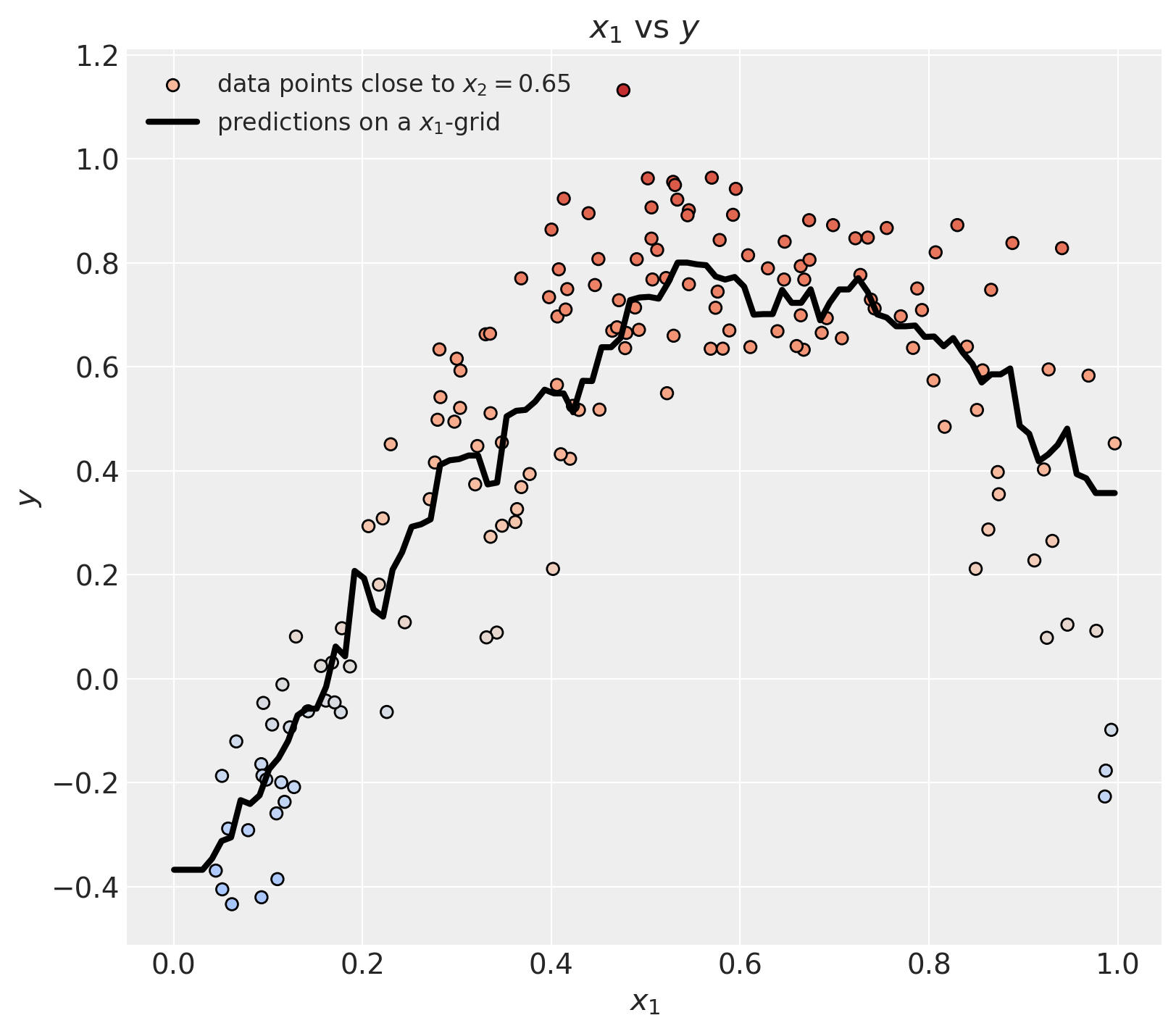 Now, we use the fitted model to generate predictions by freezing the value of \(x_2\).